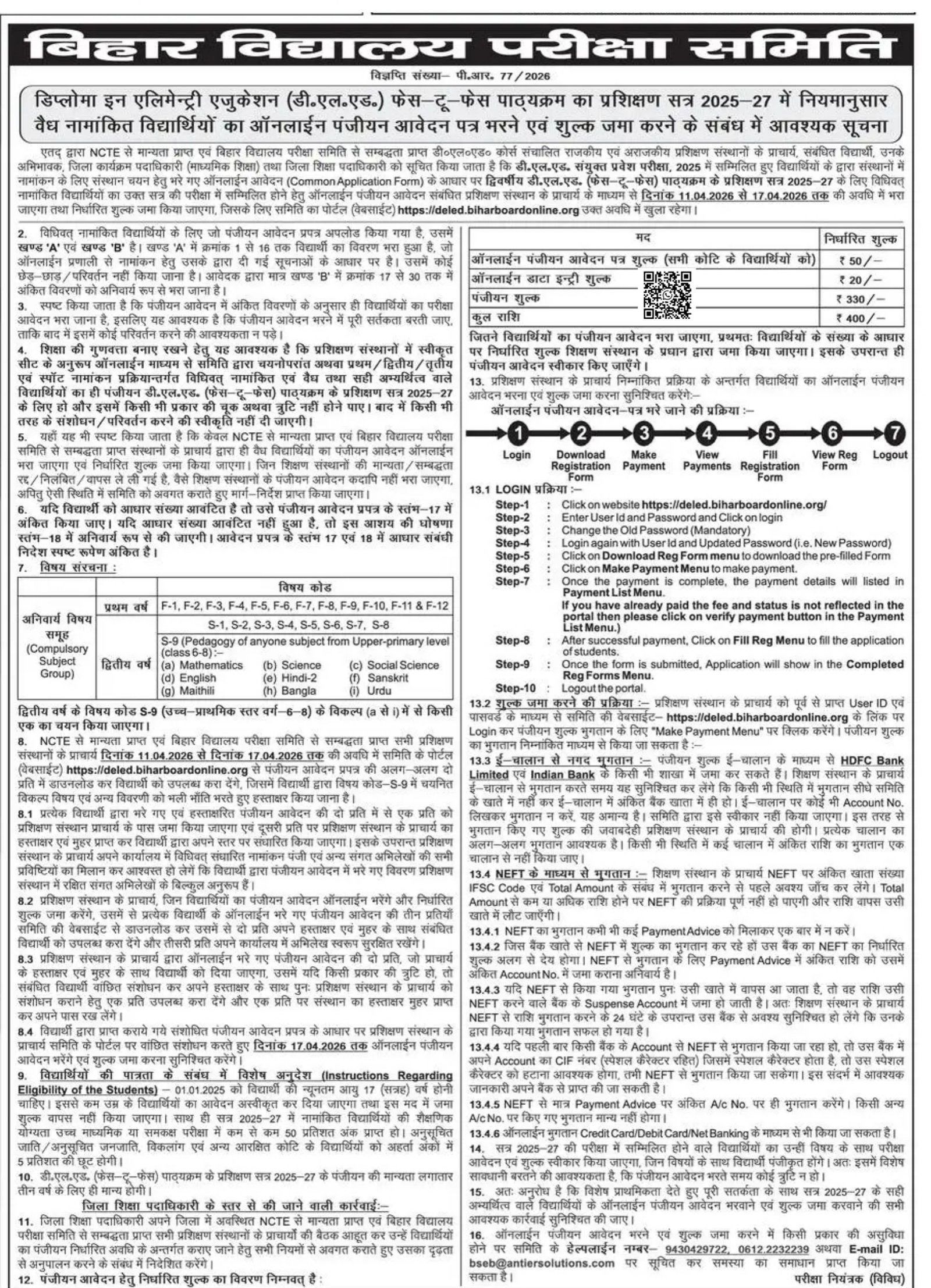 Bihar DElEd Registration 2025-27: Online Form, Fees, Last Date @deled.biharboardonline.org